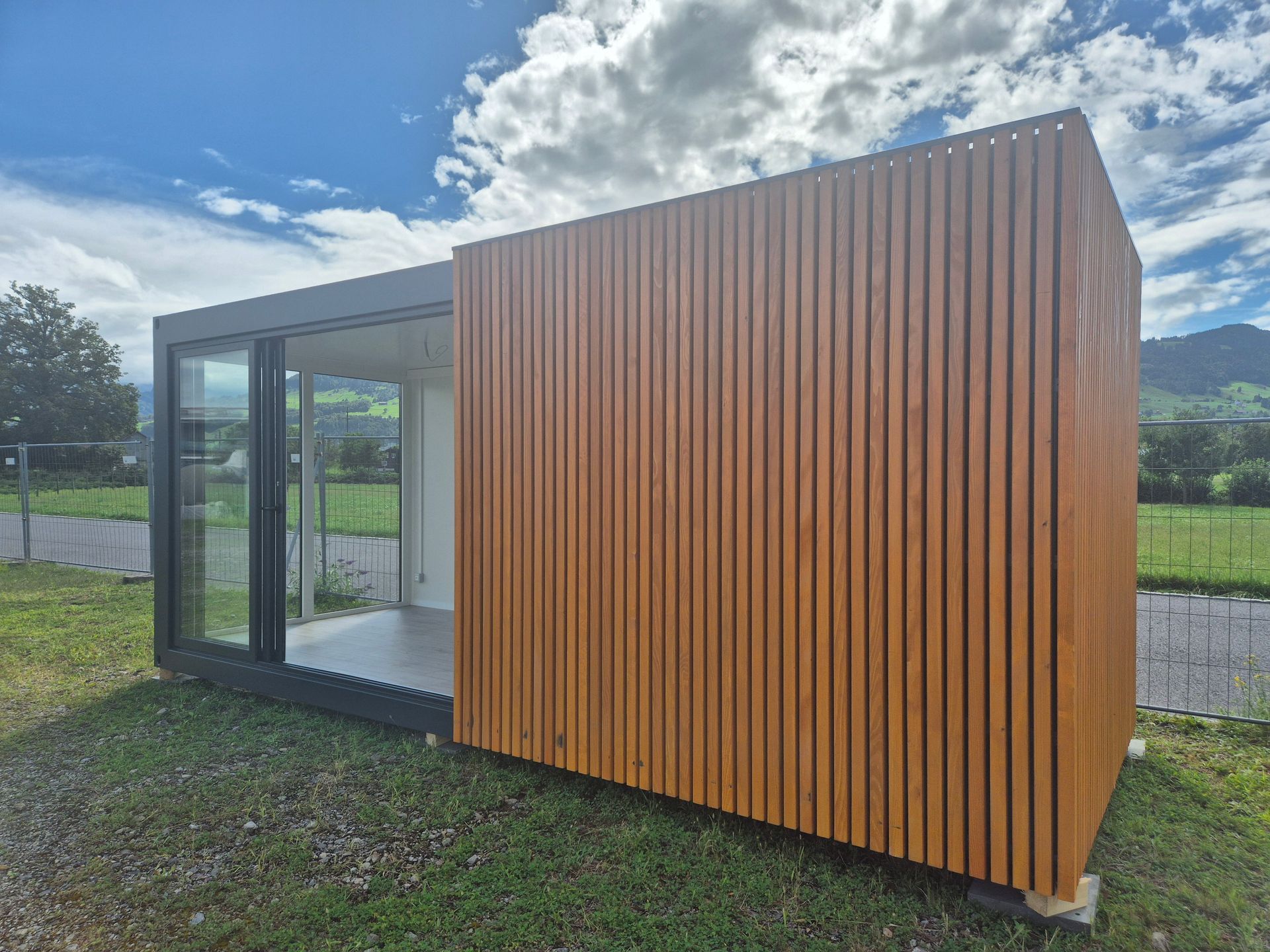 Angebot 4: Aufenthaltsmodul mit Holzfassade und Vordach
